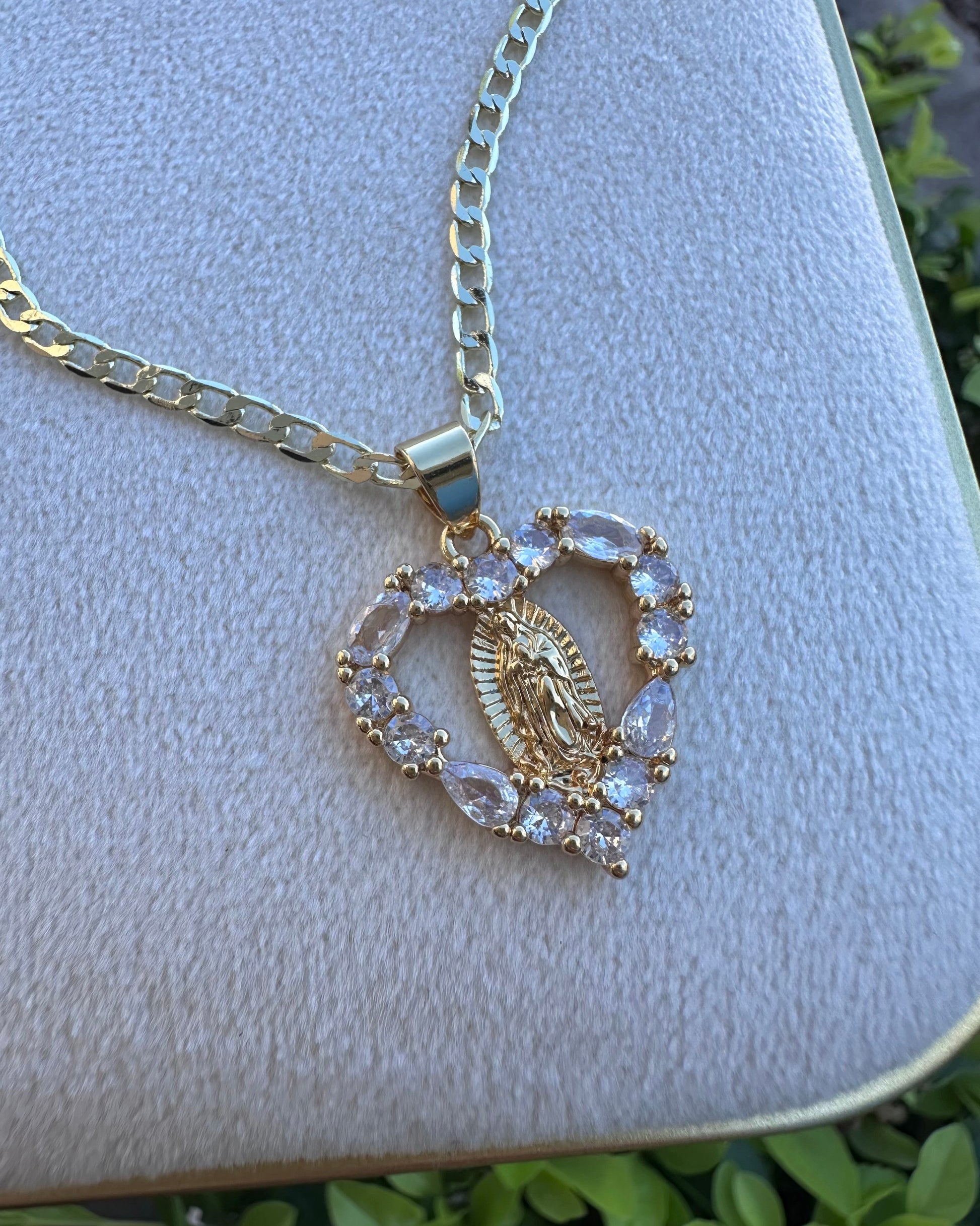 Collar Virgen Corazón Brillo